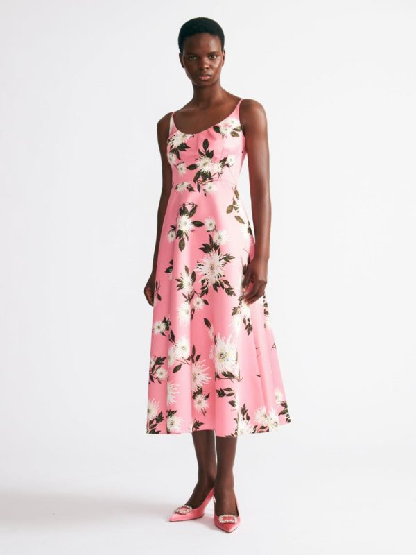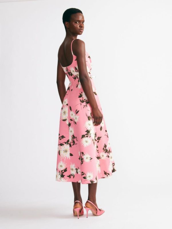 The Wenna midi dress, a stunning embodiment of elegance and charm. Crafted from taffeta faille fabric with a beautiful white floral pattern on a soft pink. The delicate spaghetti straps complement the gathered detail across the neckline, adding a touch of femininity to the design. Crafted from semi-structured, the dress has a flattering fit and flare silhouette that accentuates your figure beautifully.