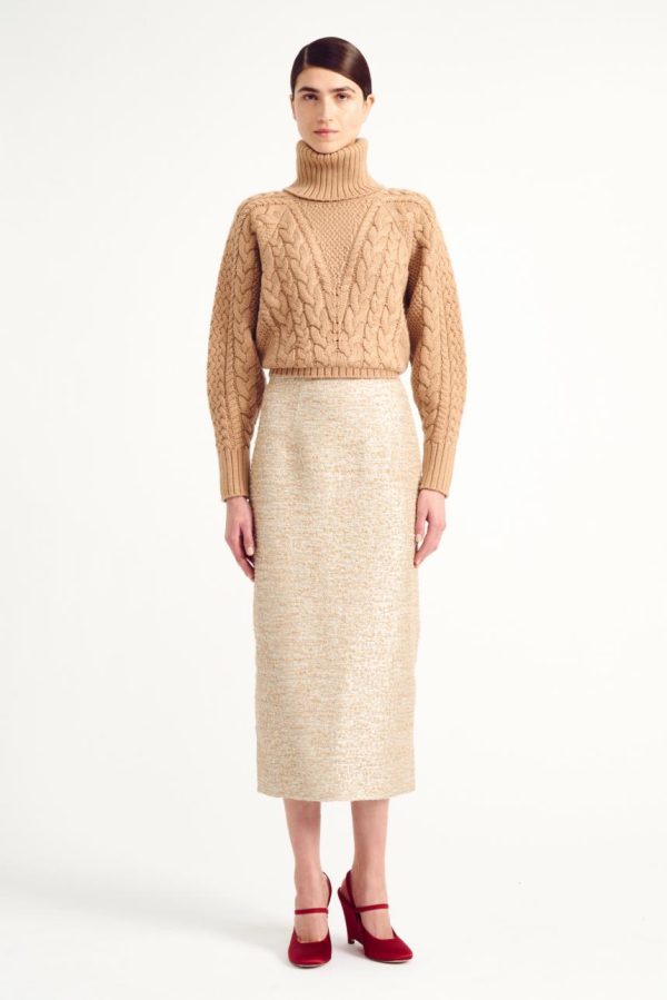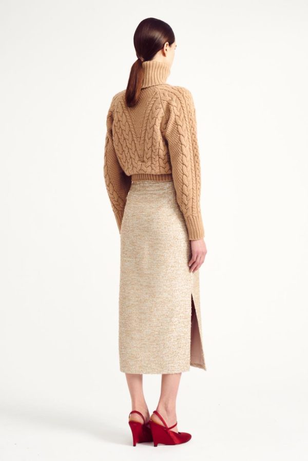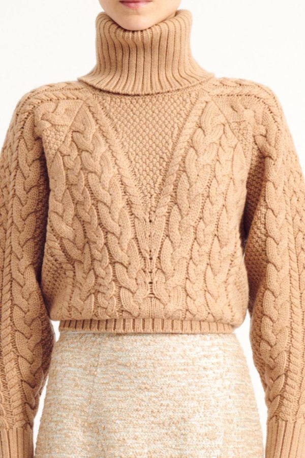 Knitted from a super soft cashmere feel yarn, the Otis cable knit sweater features an elaborate cable knit design and a ribbed detail through the neck and sleeves.