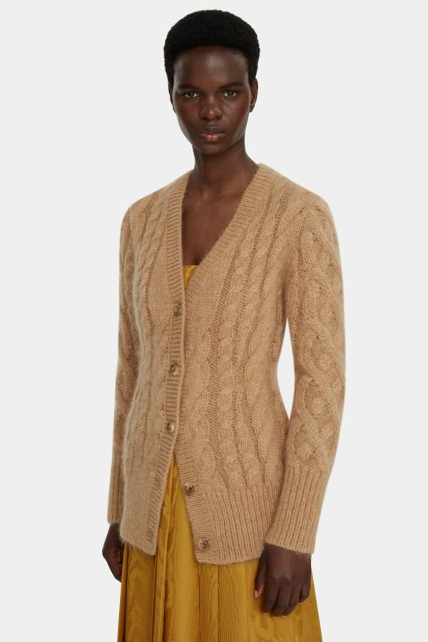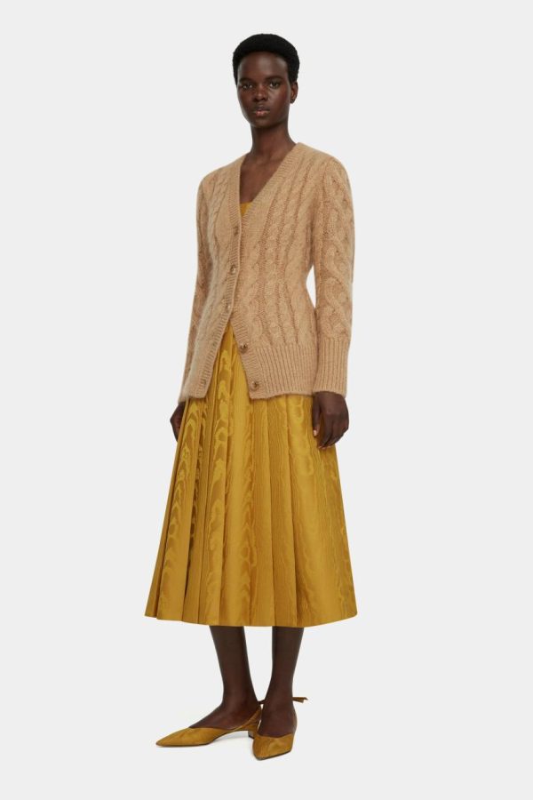 Master the art of layering with the Ross knit cardigan. In an intricate cable design, the Ross Cardigan is crafted from a super-soft mohair yarn. Finished with ribbed detail through the placket and cuffs, this cardigan forms the foundation of the Emilia Wickstead Autumn Winter 2024 wardrobe.
