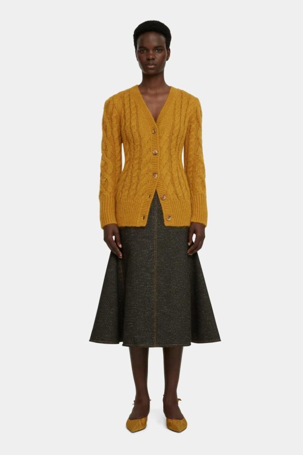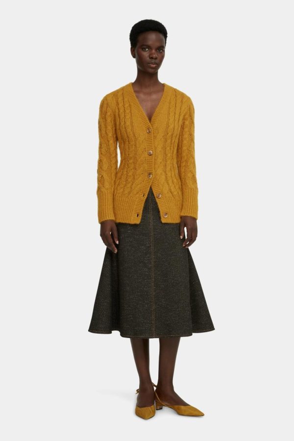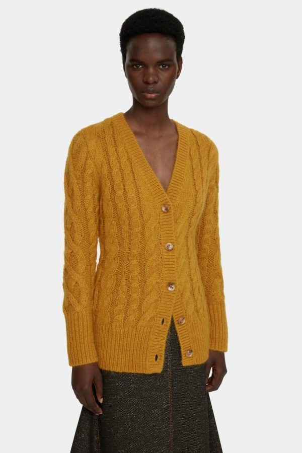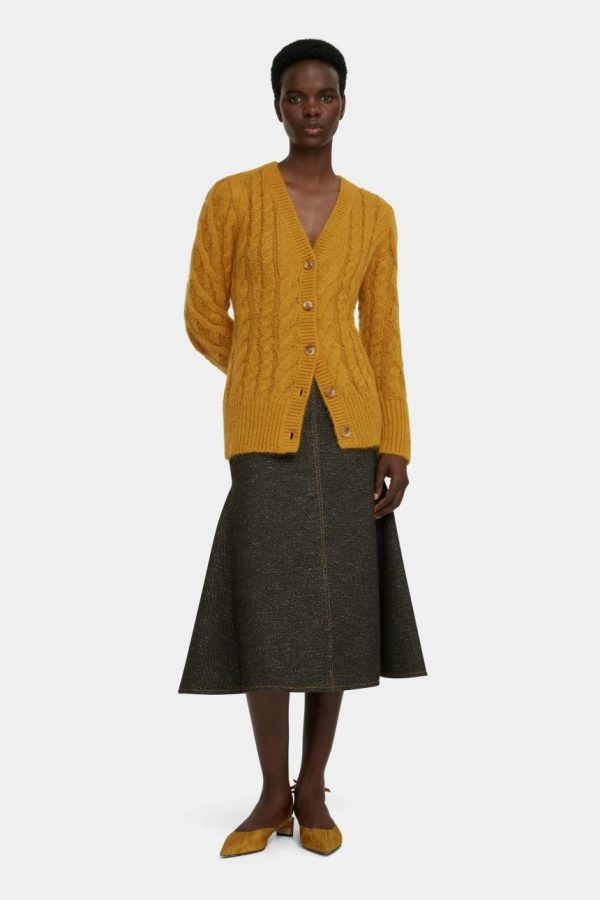 Knitwear | Women Emilia Wickstead Ross Cable Knit Cardigan In Mustard Mohair