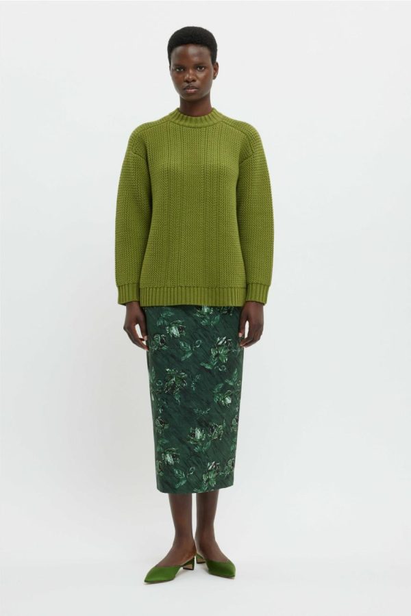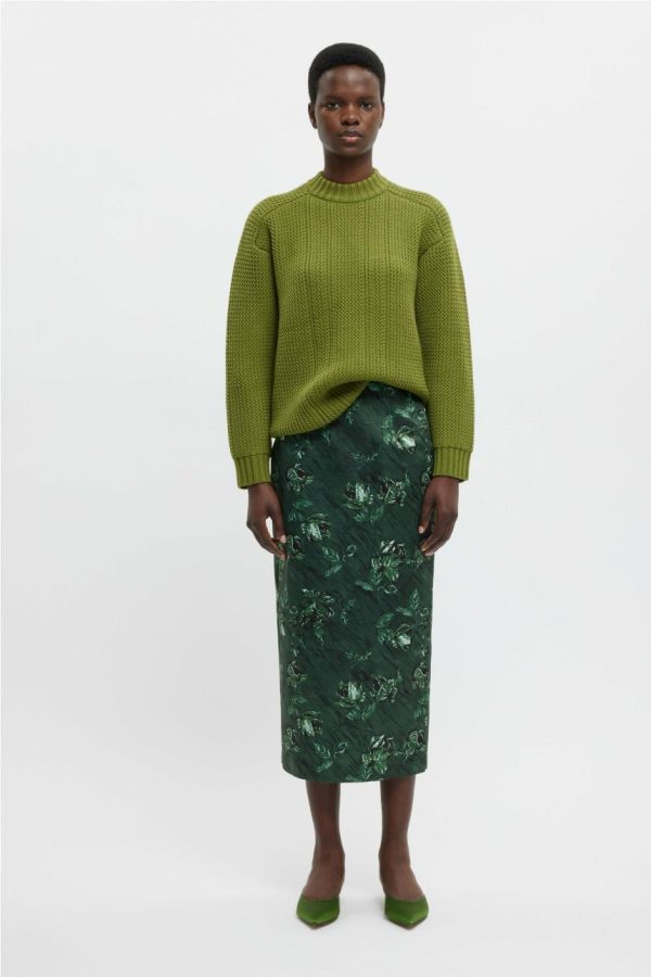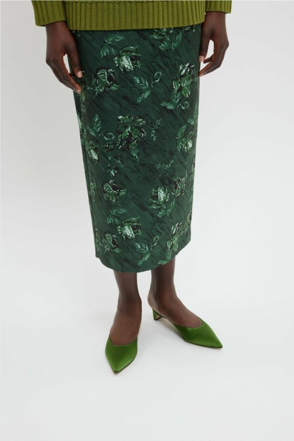 Reworked for Resort 2025, the Lorelei skirt is a versatile option for adding feminine flare to your everyday. Cut from a semi-structured taffeta faille in a floral and marble motif, this green printed pencil skirt pairs effortlessly with knits for the day and a silk shirt for the evening.